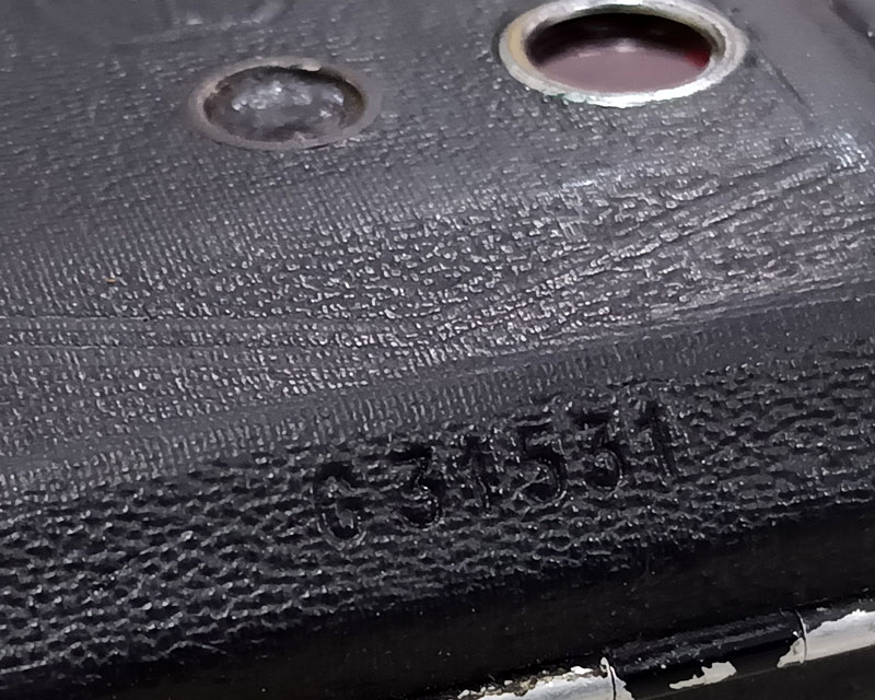 ตราประทับแผ่นหนังบนตัวกล้องรุ่นนี้ ด้านหน้า มีโลโก้ Zeiss Ikon เล็ก ๆ